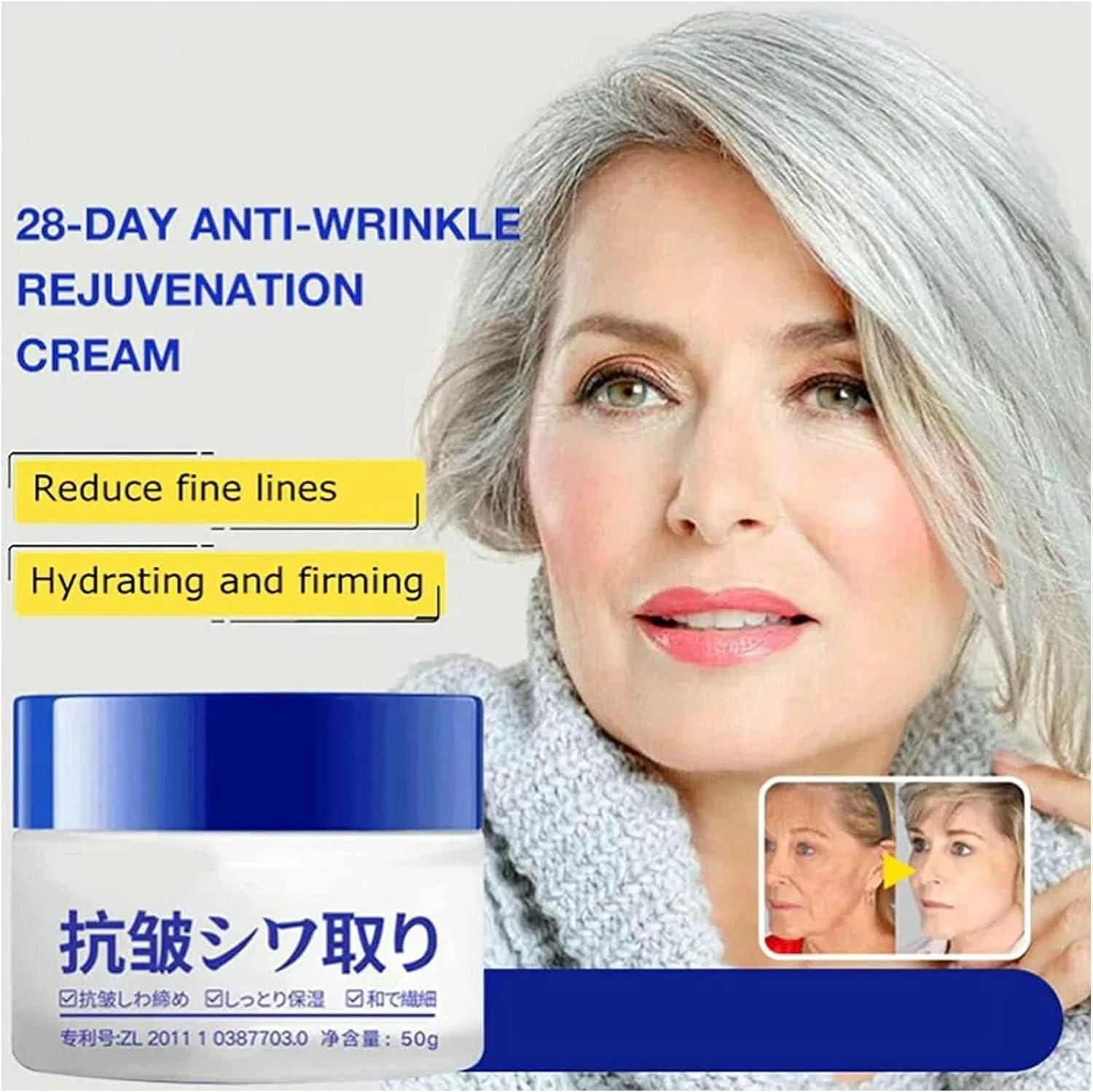 Usage/ Benefits: 28-day anti-wrinkle rejuvenation cream】Japanese anti-wrinkle face cream:Protects against wrinkles and fade fine lines Japanese tech. 28-day anti-wrinkle rejuvenation cream for face washing and smoothing, reducing microdepression, lifting and reducing fine lines.